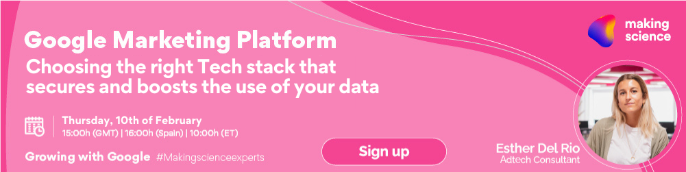 Sign up & Join Esther Del Rio, Adtech & Google Marketing Platform Consultant , on the 10th of February at 15:00 PM (GMT).